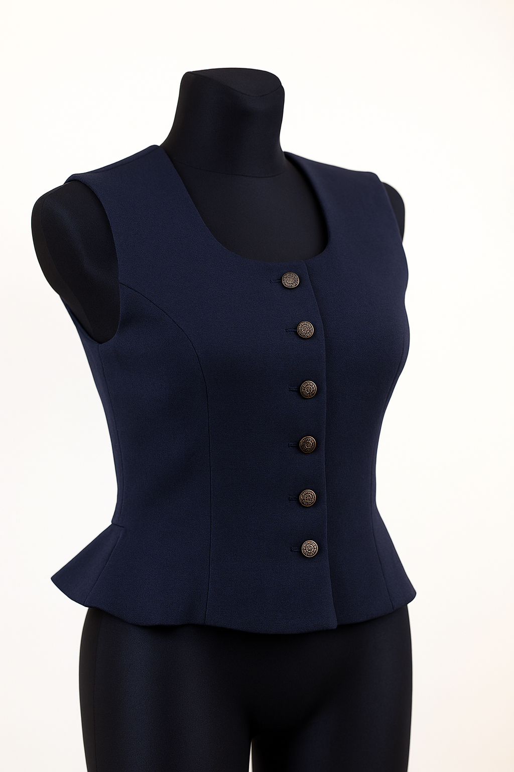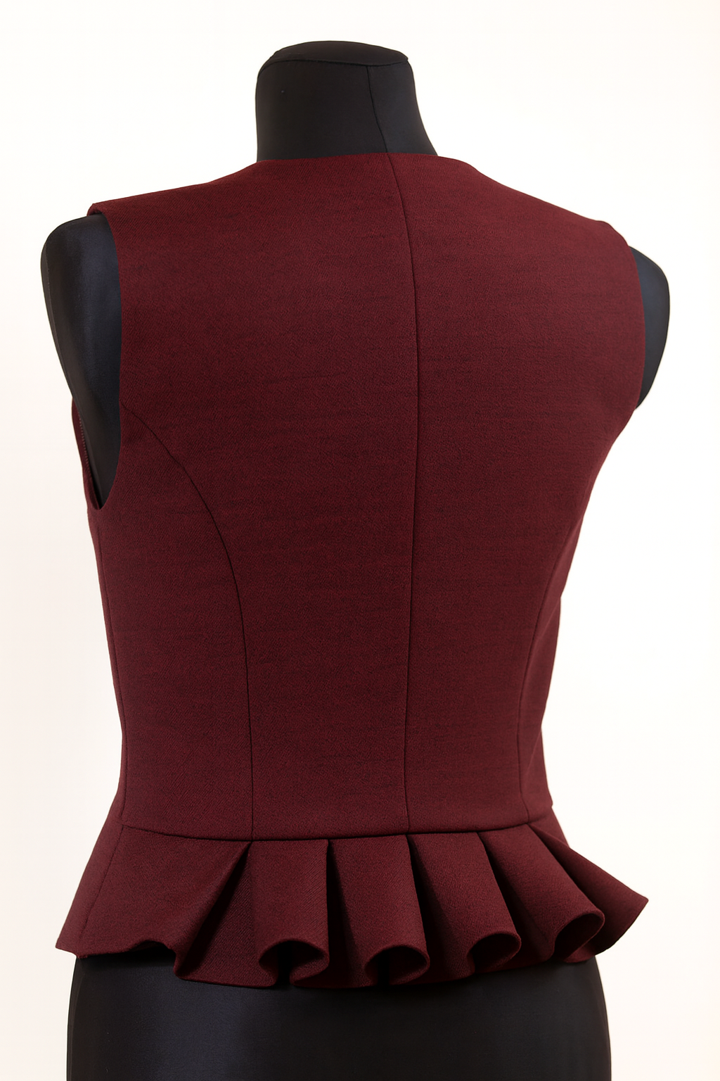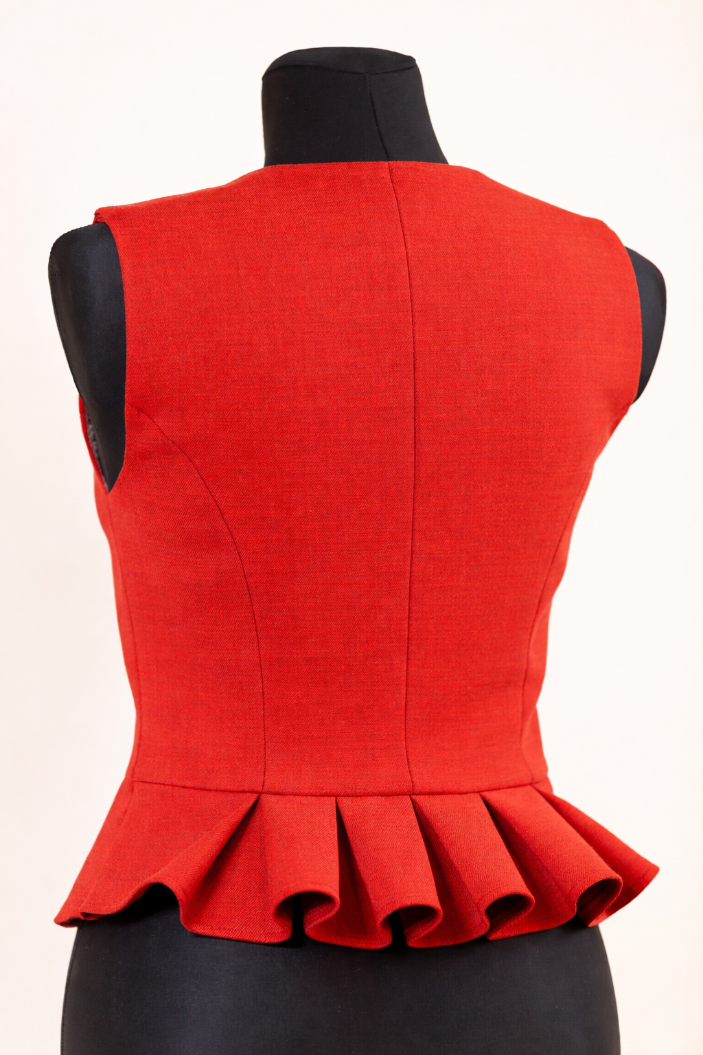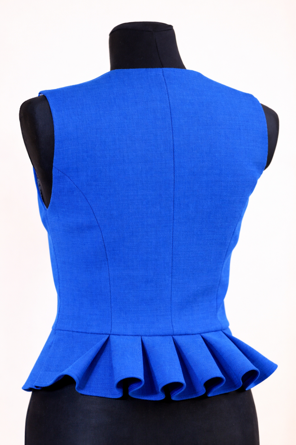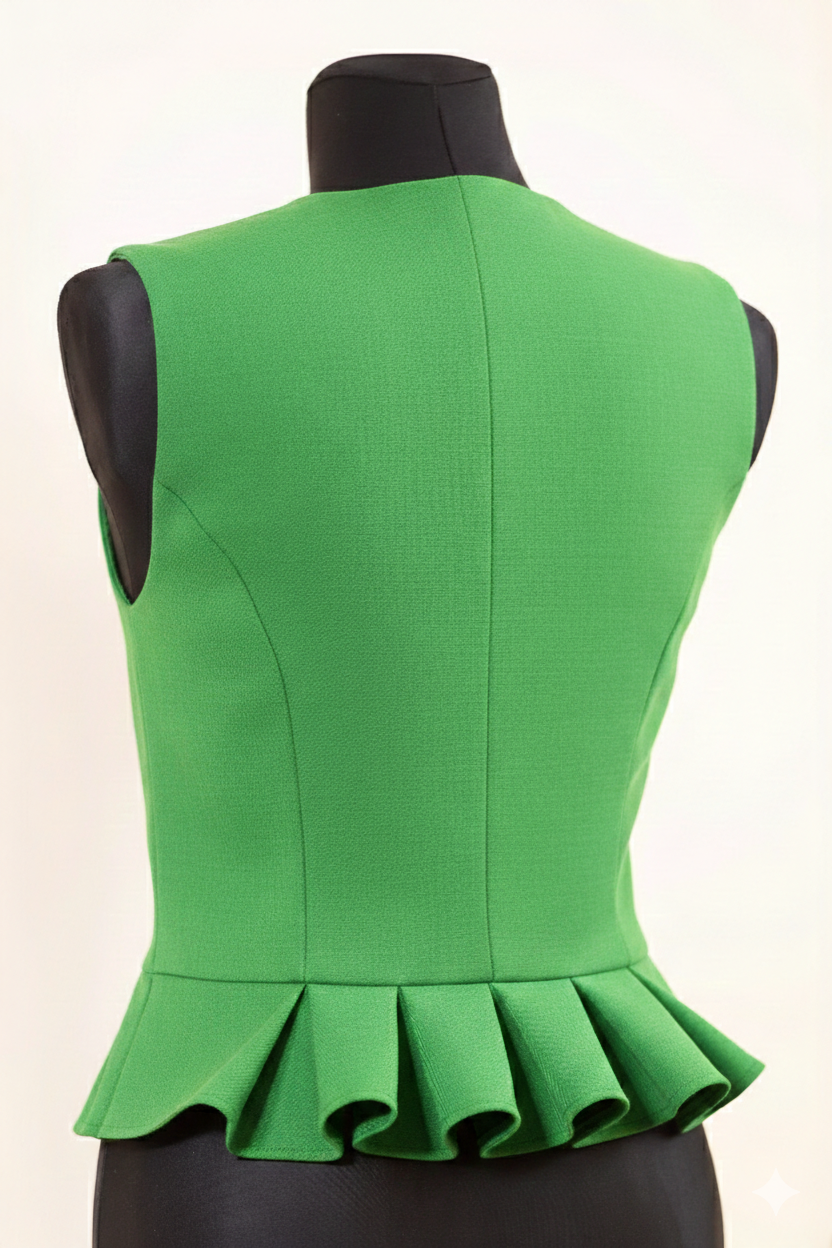 Pusvilnas auduma sieviešu tautiskā veste vai ņieburs ar 4 pretfaltēm muguras daļā, oderēta, aizdare ar pogām, regulējamas plecu un sānu vīles izmēra pielāgošanai.
