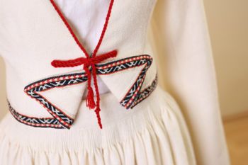 Tā nu mēs kopīgi šķirstām visu pieejamo literatūru – attēlus, aprakstus, zīmējumus, cilājam audumu paraugus, šo to pielaikojam. Mēs sadarbojamies arī ar Latvijas Nacionālās vēstures muzeja Etnogrāfijas nodaļas speciālistiem, meklējot fondos ko nepublicētu. Vienmēr jāatceras: tautas tērps ir mūsu kopējs īpašums, tāpat kā tautas dziesma. To nevar patentēt, un tas